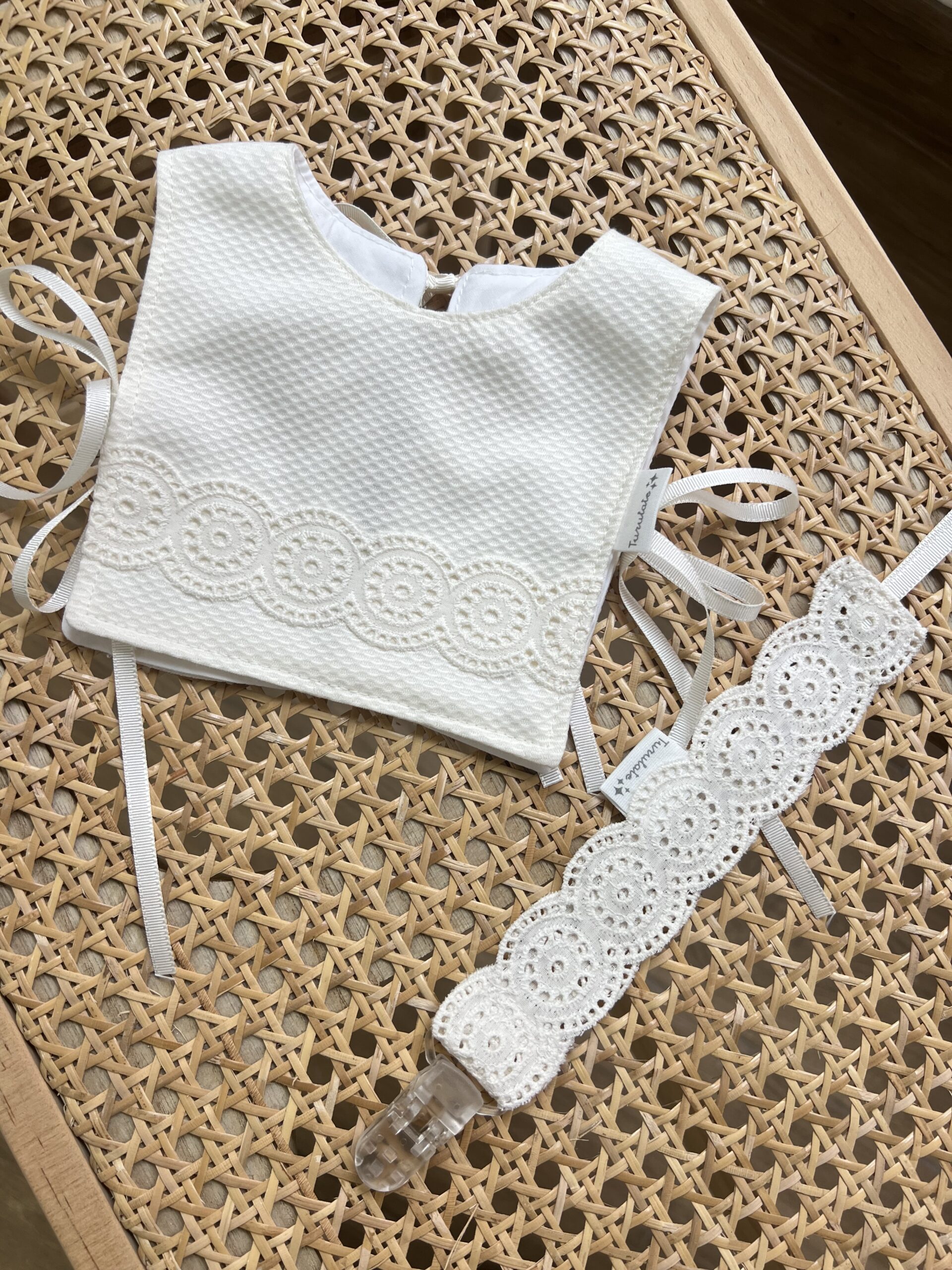 Babero, Babero y chupetero tira bordada